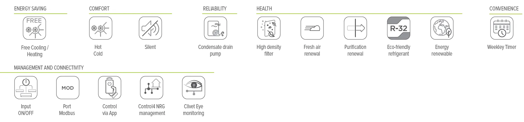 За контролирана механична вентилация и термодинамична рекуперация на топлина Clivet